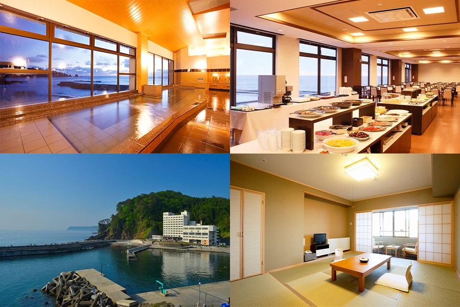 ホテル===★北山崎(東北の東尋坊・リアス式海岸/約40分)===★浄土ヶ浜散策(三陸復興国立公園にある三陸を代表する景勝地/約30分)===★あえりあ遠野で昼食===★とおの物語の館[旧とおの昔話村](語り部による昔話/入館料込/約60分)===★大谷翔平モニュメント(花巻東高校出身である大谷選手のメジャーでの輝かしい成績を記念したモニュメントを見学/約50分)===山の神温泉(泊)17:00頃着