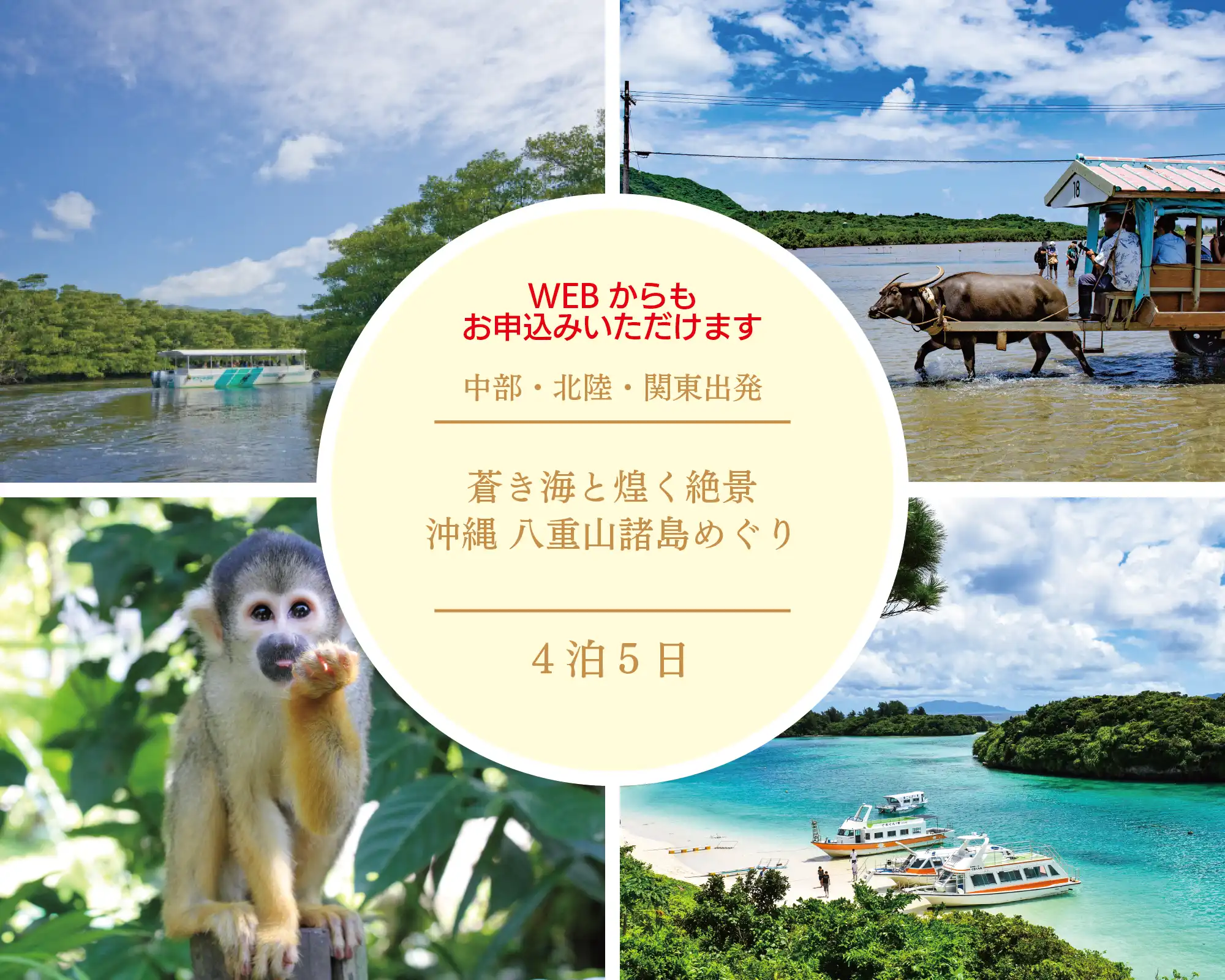 4泊5日 5月・6月 199,900円(税込) 【中部・北陸・関東発】贅を尽くした最上級ホテルに泊まる 蒼き海と煌く絶景 沖縄・八重山諸島めぐり5日間