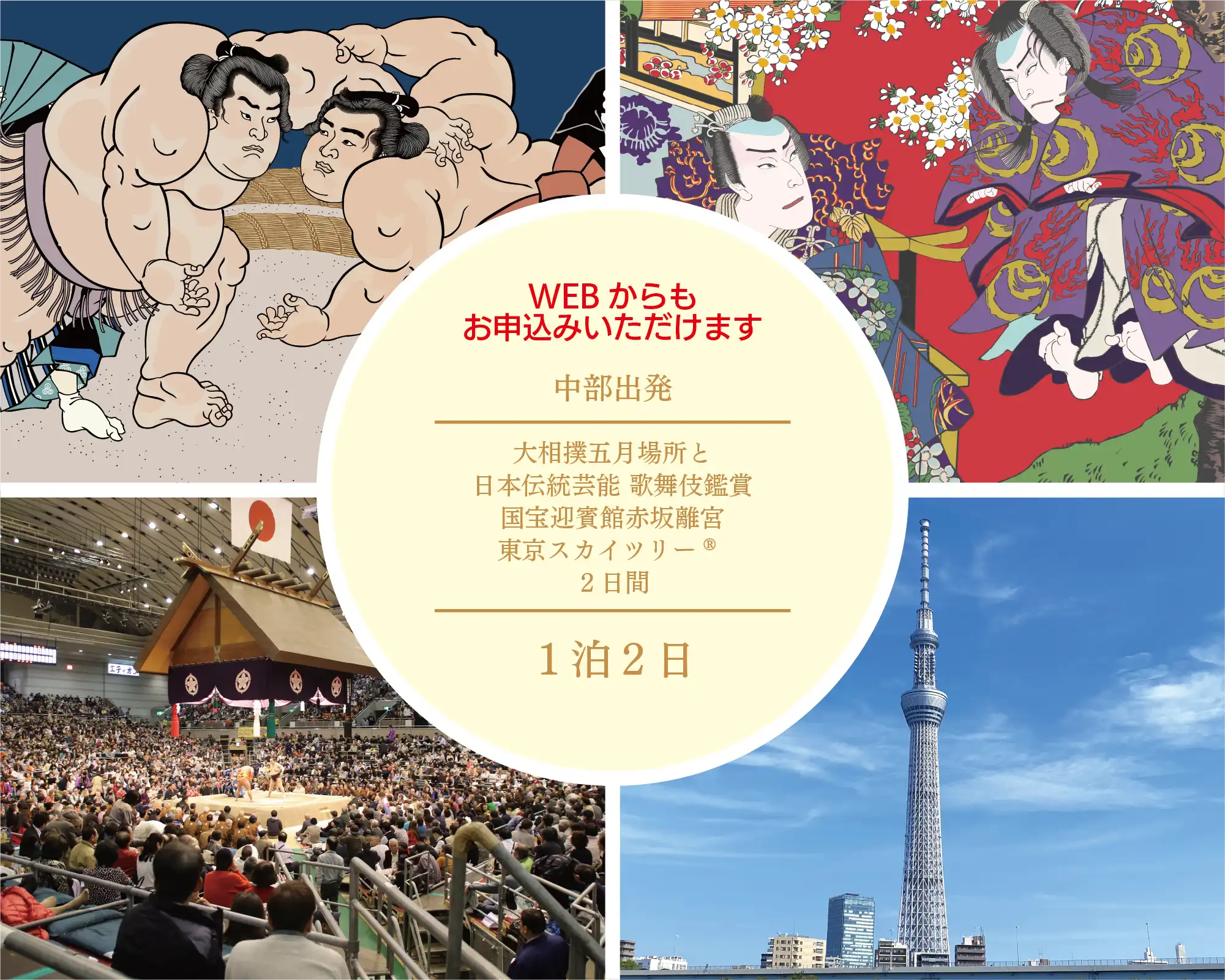 1泊2日 5月 89,900円(税込) 【中部版】大相撲 五月場所と 日本伝統芸能歌舞伎鑑賞 国宝 迎賓館赤坂離宮 東京スカイツリー®2日間